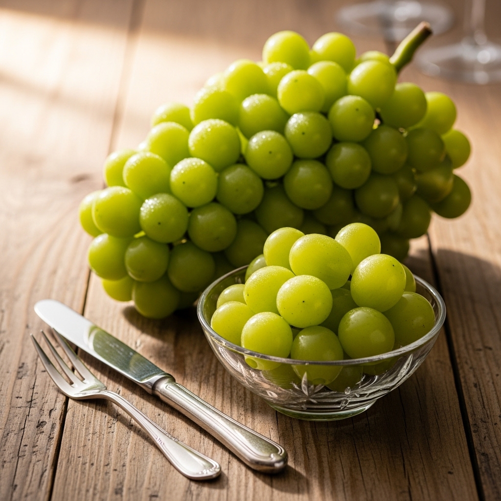 샤인머스캣은 ‘망고포도’라는 별칭으로 불릴 만큼 강한 단맛과 향긋한 향을 자랑합니다. 껍질째 먹을 수 있고, 씨가 거의 없어 아이들과 어르신 모두 부담 없이 즐길 수 있는 과일입니다.